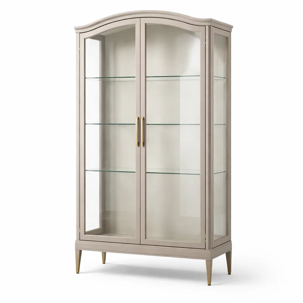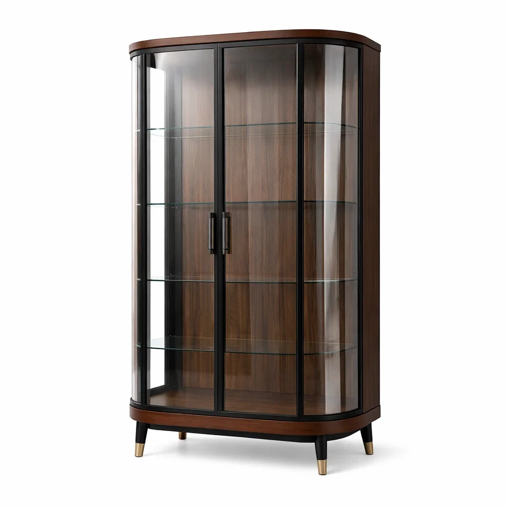 Vitrine holz dunkelbraun mit gehärtetem glas und metalldetails