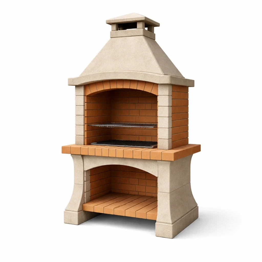 Grill beton und ziegel beige orange mit rost 90 x 150 x 65 cm